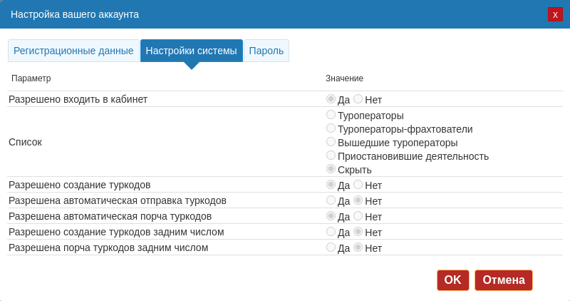 На следующей вкладке вы можете ознакомиться с настройками вашего аккаунта в системе, которые позволяют вам определенные действия. Настройка "Список" определяет, в каком именно списке вы находитесь на сайте www.fondkamkor.kz