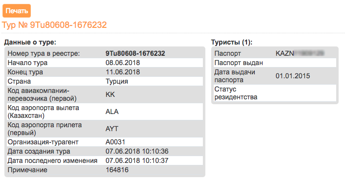 В случае, если тур действительно не был зарегистрирован, но продан, виновные будут наказаны (туроператор, продавший тур, будет лишен лицензии на туроператорскую деятельность). Так требует пункт 3 статьи 27-3 главы 4-1 закона "О туристской деятельности в Республике Казахстан" от 17.11.15 г. Обязательно оставьте контакт для связи с Вами, так как может понадобиться Ваш договор с турагентом и чеки об оплате, как доказательство продажи тура.